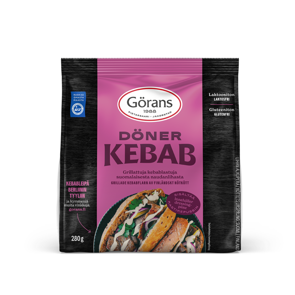 Grillade kebabflarn av 100% finländskt kött med tillhörande kebabdressing. Flarnen är färdiglagade och redo att avnjutas – varma eller precis som de är! Den